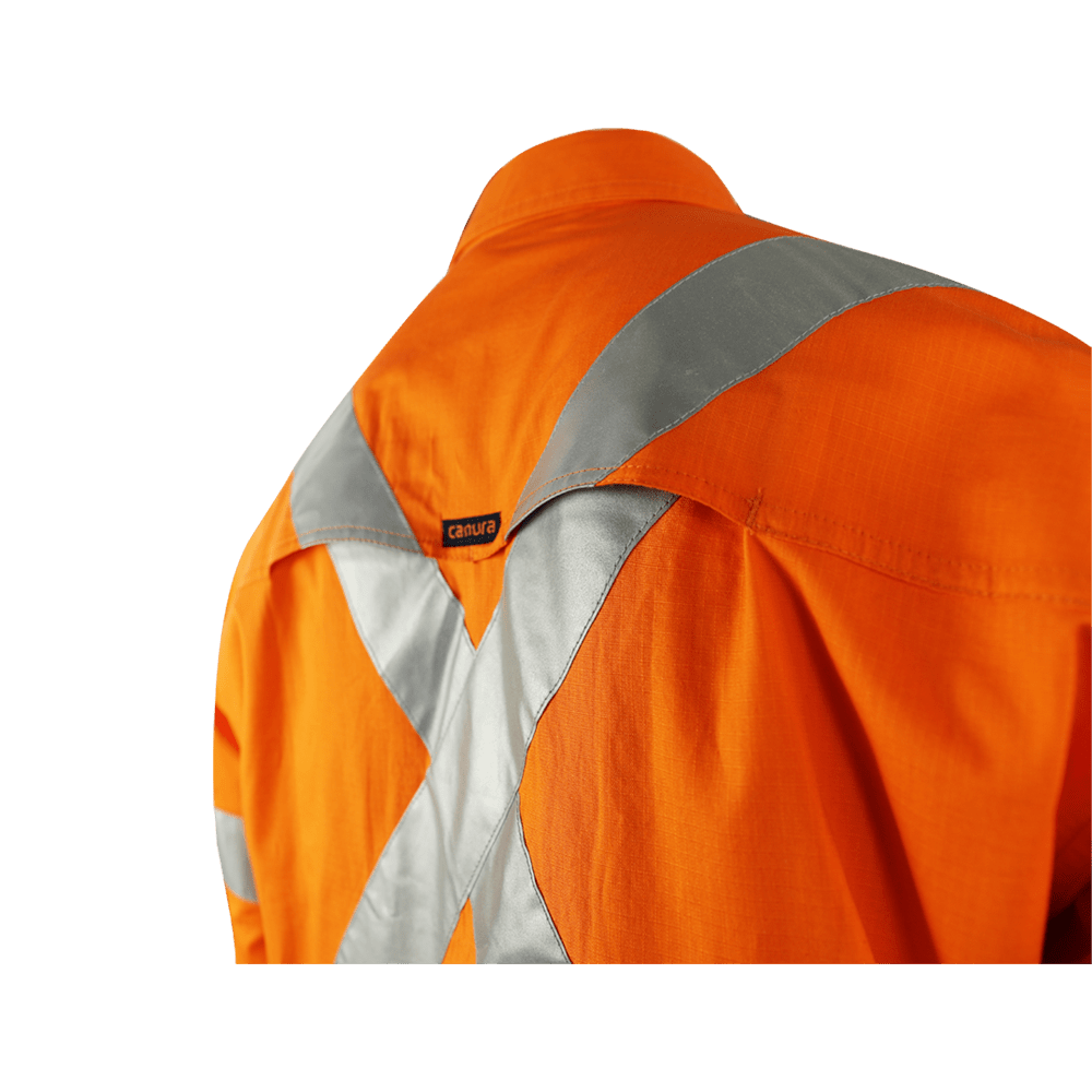 Canura Ripstop Hi Vis Shirts Safety Full Orange Cotton Work Cross Back Tape Vents