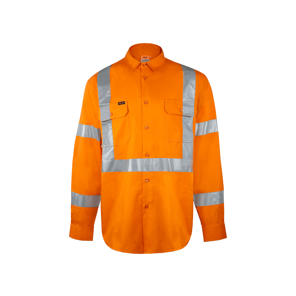 Canura Ripstop Hi Vis Shirts Safety Full Orange Cotton Cross Back Tape