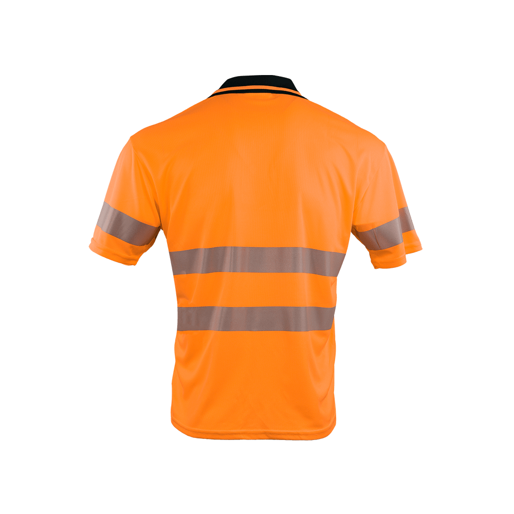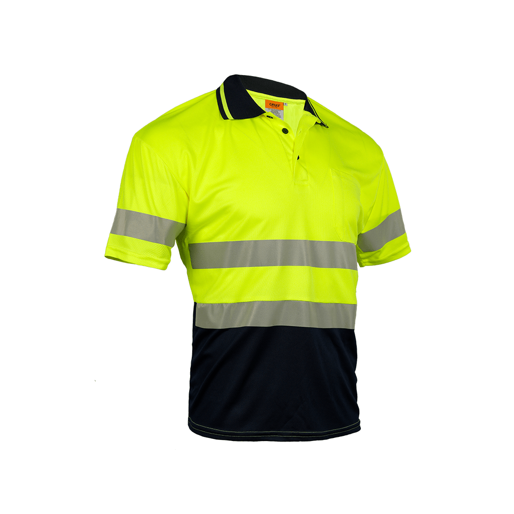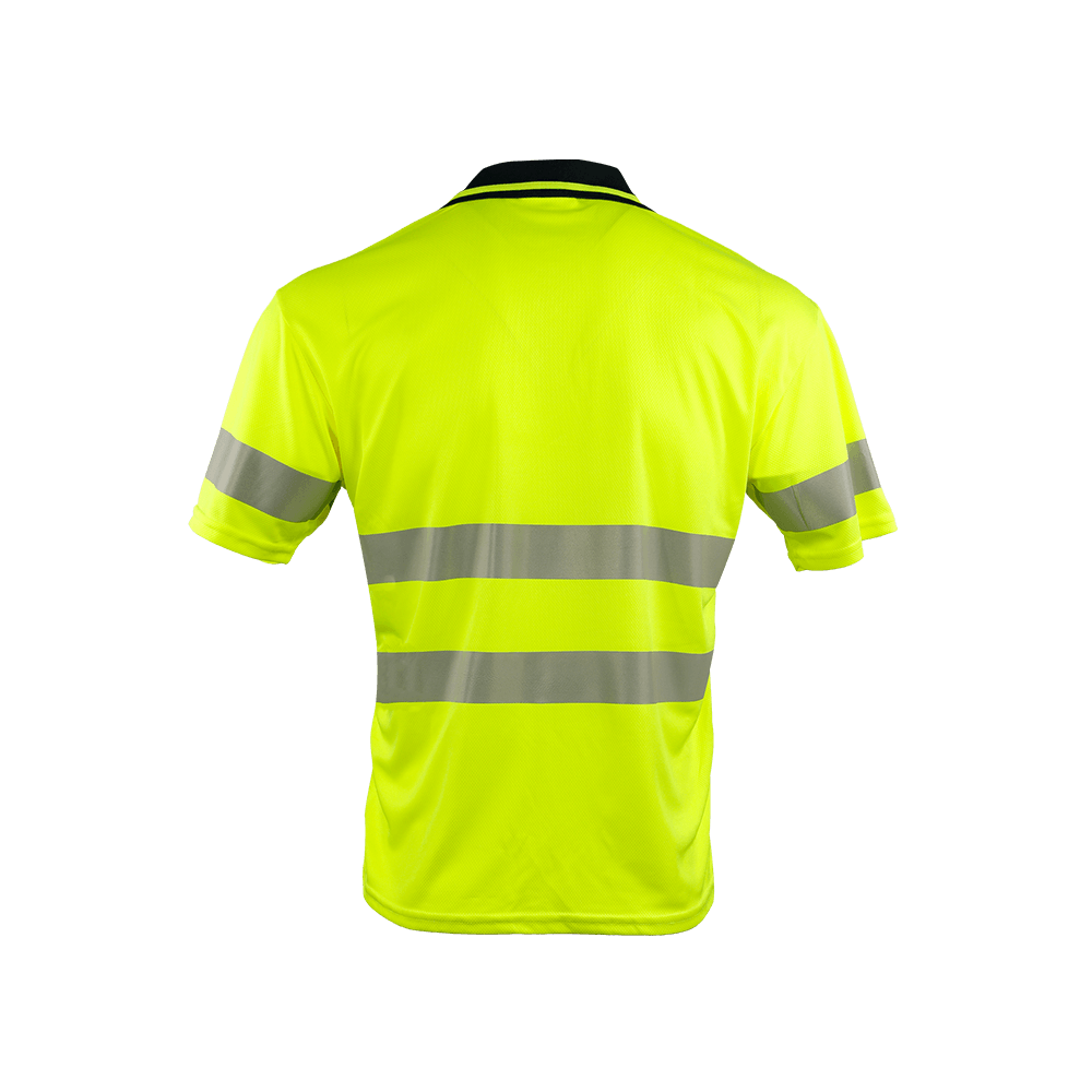 An everyday use Hi Vis polo safety with polyester mesh under arms. .Australian standard complied reflective tape configuration