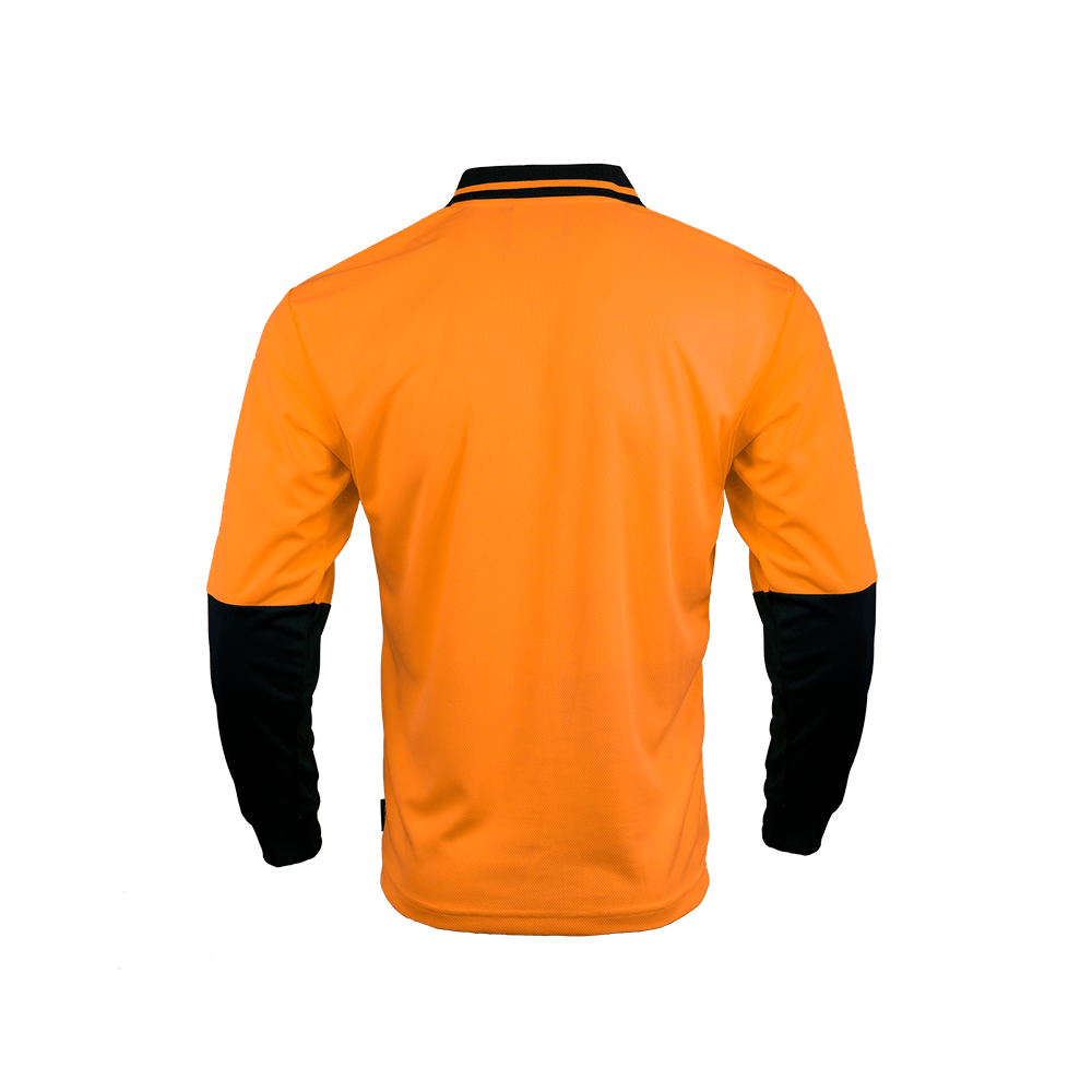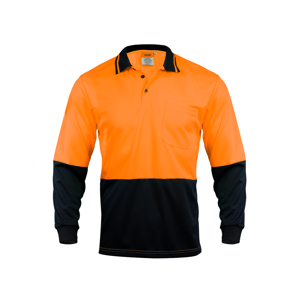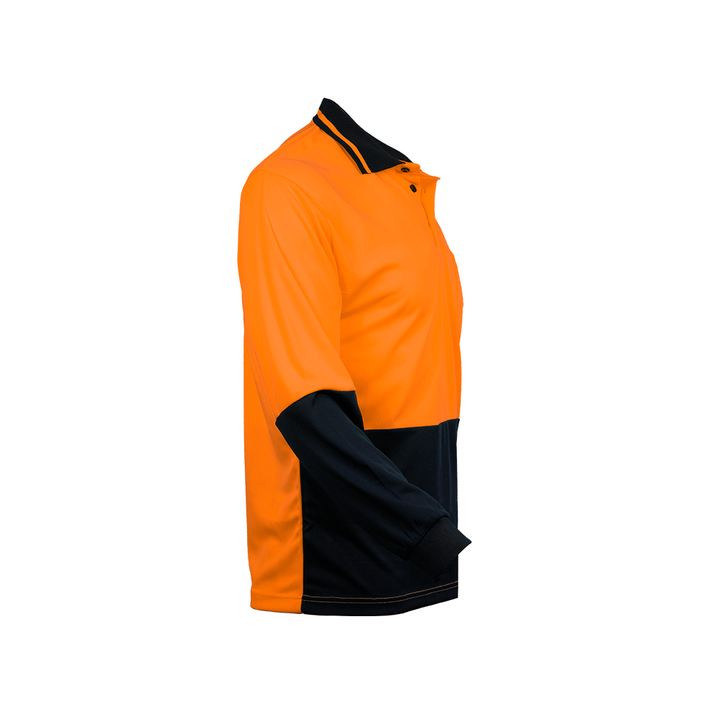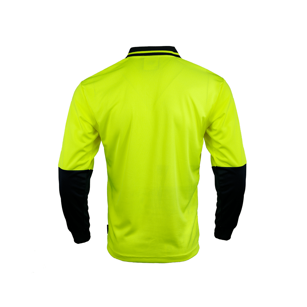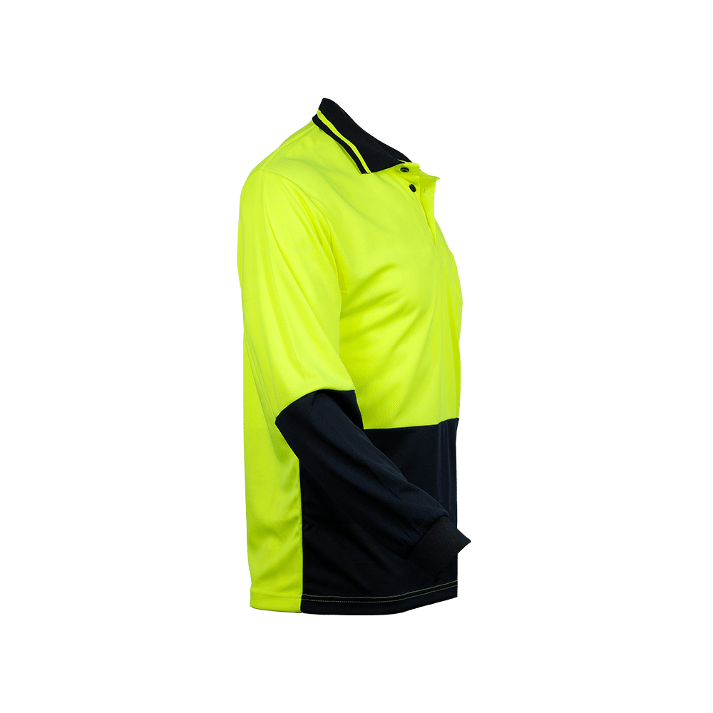 An everyday use Hi Vis polo safety with polyester mesh under arms.