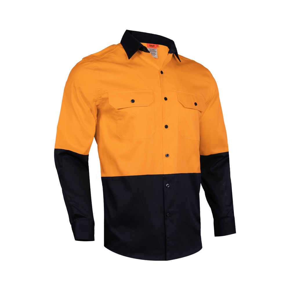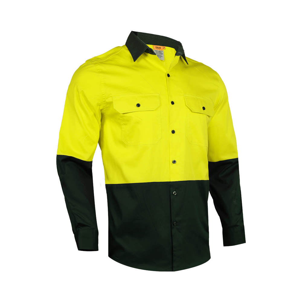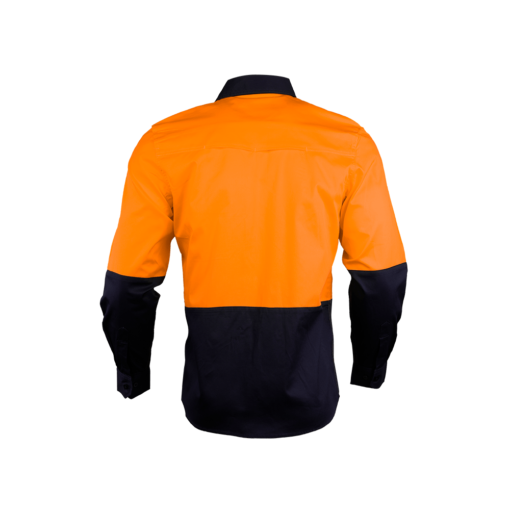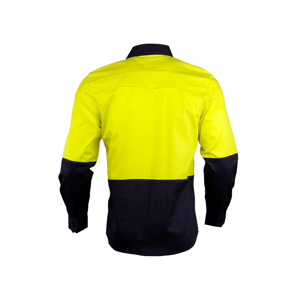 A durable lightweight Hi Vis cotton drill shirts with breathable cotton mesh under the arms and back yoke. Australian standard complied reflective tape configuration.